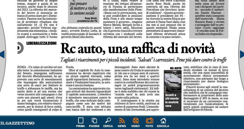 Sarà comunque il 20 marzo il termine effettivo per non aver sorprese, ma siamo ampiamente convinti che questo 30% riguardi il passato. Ciò ha fornito un’occasione alle Compagnie per far ricorrere agli accordi fiduciari dell’ultimo minuto,diversi carrozzieri, che ancora una volta segnano la fragilità di chi è disunito.